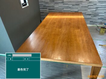 テーブル塗装をさせて頂きました!木材も時間が経つと細かい木が出てきて、ざらざらした感覚になります。やすりで凹凸をなくした後着色すると、新品のようになりました!
